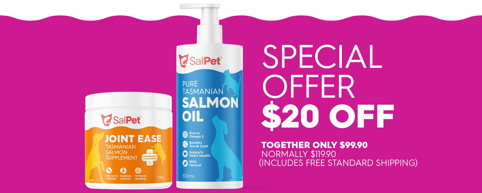 Sourced from fresh raw Atlantic Salmon from Tasmania's pristine waters, SalPet ensures a high-quality, sustainable product by using by-products that would otherwise go to waste. Give your pets the proven benefits of Omega 3 long-chain fatty acids (DHA & EPA) for their health and vitality.